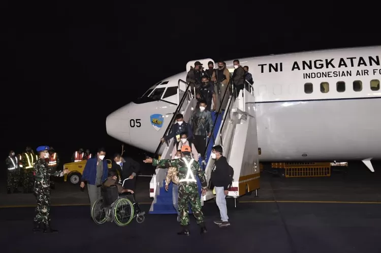 Menteri Luar Negeri Retno Marsudi didampingi Panglima TNI Marsekal Hadi Tjahjanto menyambut kedatangan mereka di Bandara Halim Perdanakusuma.